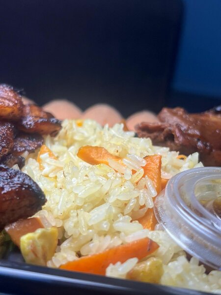 Assorted Jollof rice. Mixed with Vegetables , egg, chicken, Gizzard, Sausage