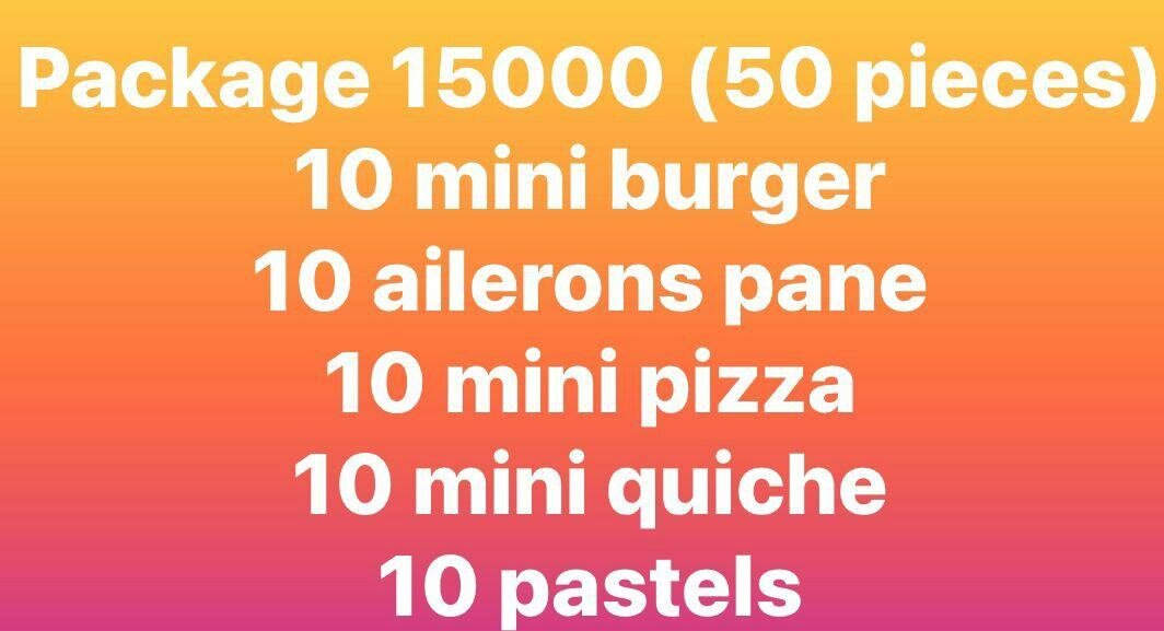 Découvrez notre délicieux Assortiment Apéritif, comprenant 10 mini burgers, 10 ailerons panés, 10 mini pizzas, 10 mini quiches et 10 pastels. Parfait pour vos réceptions, soirées ou fêtes d’anniversaire, cet assortiment offre une variété savoureuse qui plaira à tous vos invités. Simplifiez l'organisation de vos événements avec ces bouchées gourmandes et prêtes à déguster. Commandez dès maintenant pour un apéritif réussi!