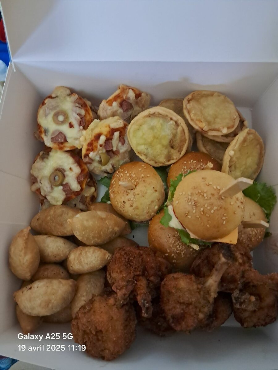 Découvrez notre assortiment apéritif parfait pour toutes vos réceptions : mini-pizzas savoureuses, burgers gourmands, et bouchées croustillantes. Idéal pour partager entre amis ou en famille !