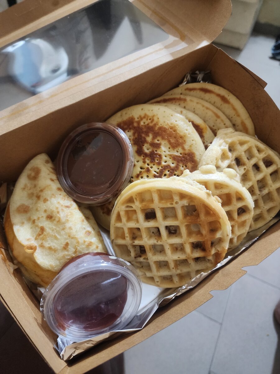 Dégustez cet assortiment délicieux de crêpes moelleuses et de gaufres croustillantes, parfaites pour un petit-déjeuner gourmand. Livrés avec sirops savoureux en portions pratiques, ces délices sucrés sont idéaux pour toute occasion. Un régal pour les amateurs de douceurs!