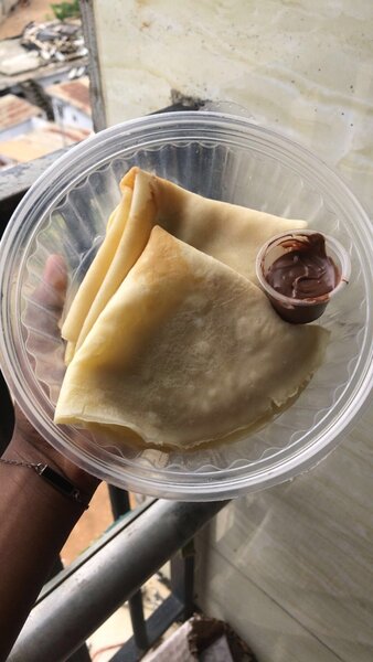 Box bien garnie de crêpes ( Nature, Tourbillon et au chocolat Nutella ) Accompagner de 5 petits Pots de chocolat Nutella