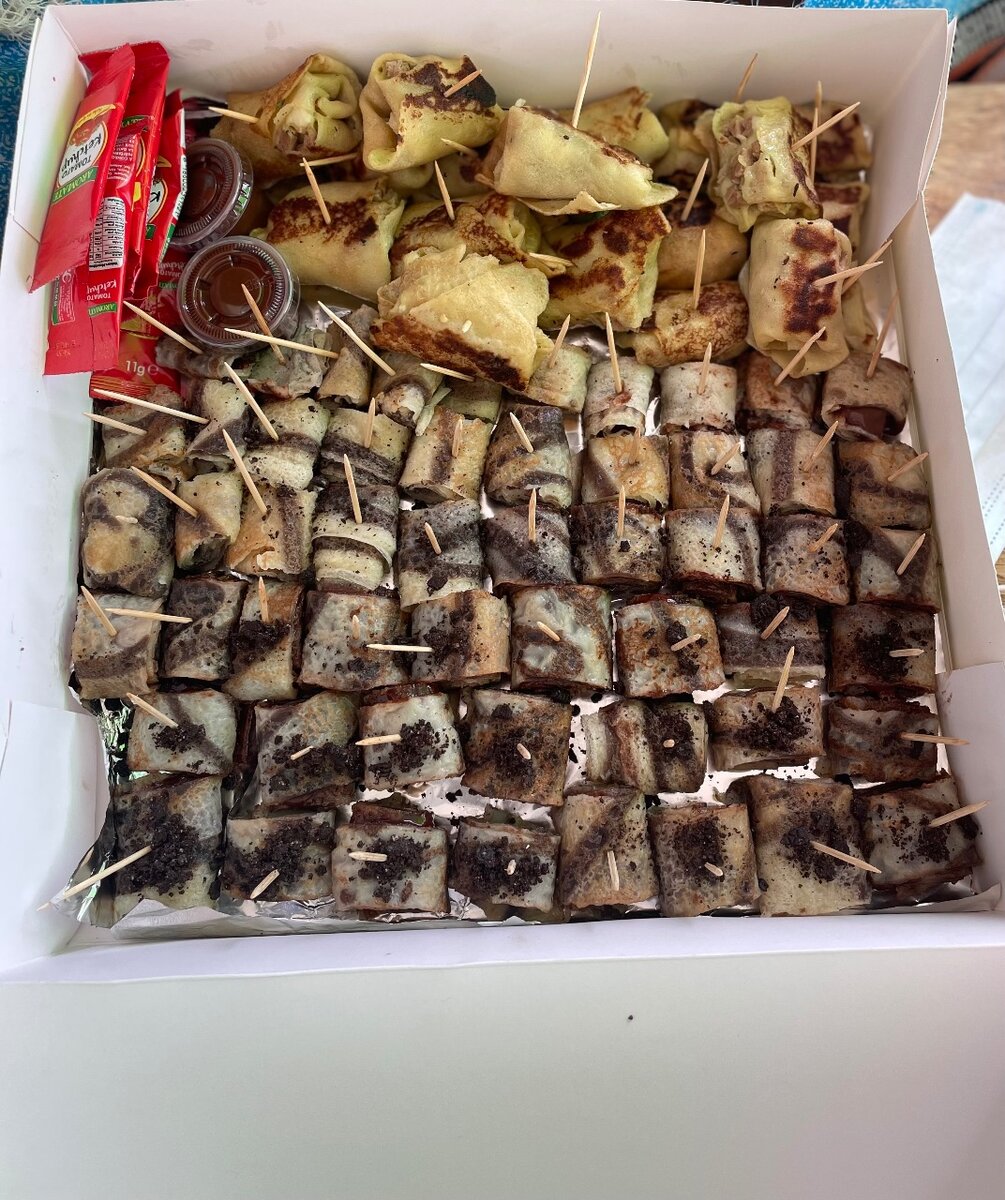 Découvrez notre assortiment de délicieuses crêpes, parfait pour toute occasion. Chaque boîte contient un mélange savoureux de crêpes fourrées de différents goûts uniques, accompagnées de sauces pour une expérience culinaire exquise. Idéal pour les fêtes, les réunions ou simplement pour se faire plaisir à la maison. Commandez maintenant et profitez d’une douceur irrésistible!