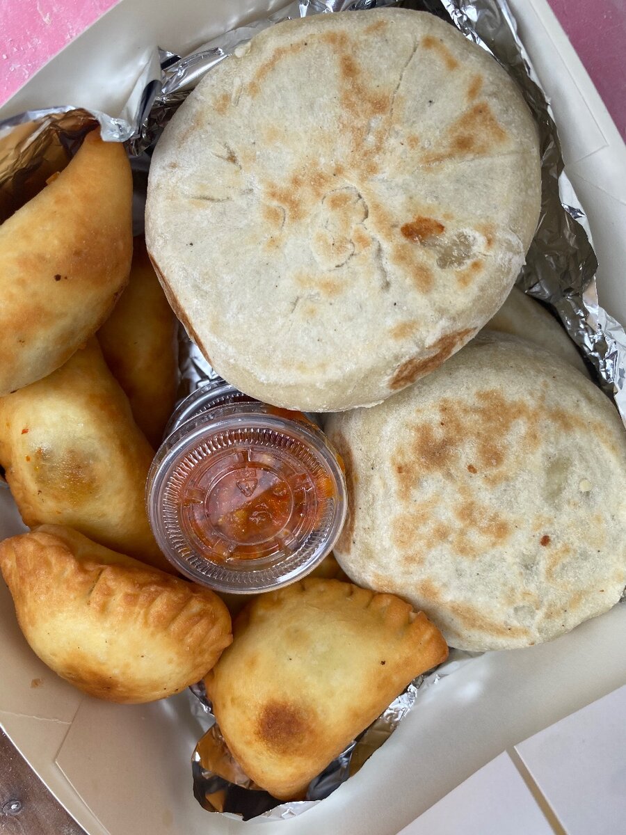 Découvrez cet assortiment délicieusement authentique de pains farcis et empanadas. Parfait pour vos repas en famille ou entre amis, chaque bouchée offre une explosion de saveurs. Accompagné d'une sauce épicée qui rehausse le goût, c'est le choix idéal pour les amateurs de cuisine internationale.