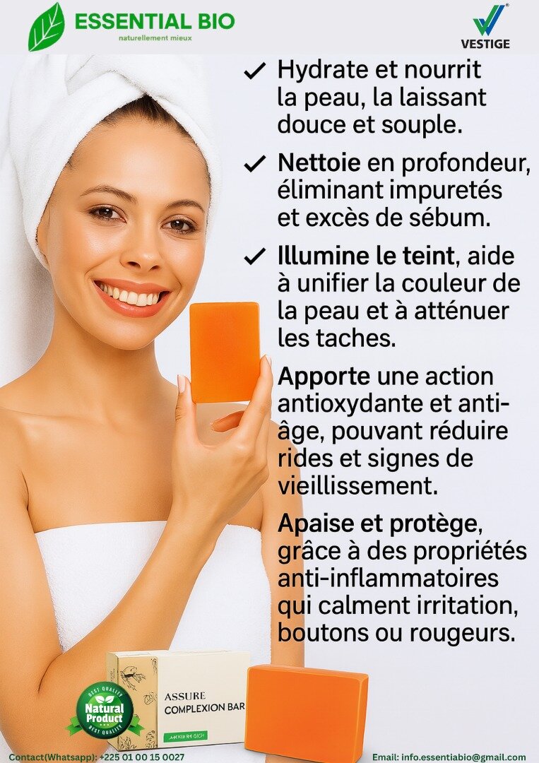 Savon visage hydratant et purifiant. Illumine le teint et réduit les impuretés grâce à ses propriétés antioxydantes. Idéal pour unifier la couleur de la peau et atténuer les signes de vieillissement. Convient aux peaux sensibles.