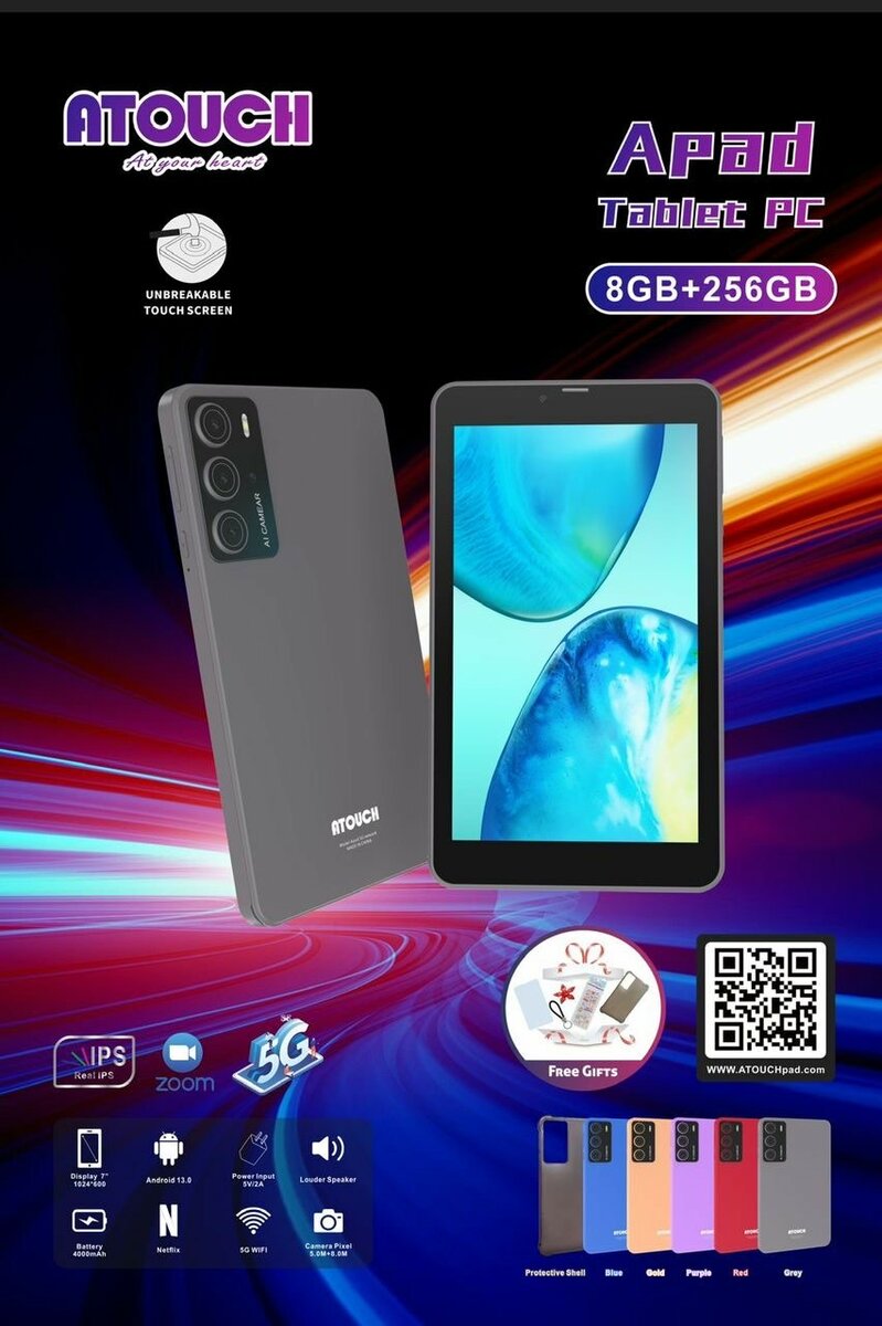 Discover powerful performance with the ATOUCH APad Tablet PC featuring 8GB RAM and 256GB storage. Ideal for multitasking and entertainment, it supports 5G connectivity and has an unbreakable touch screen, perfect for on-the-go use. Available in multiple colors.