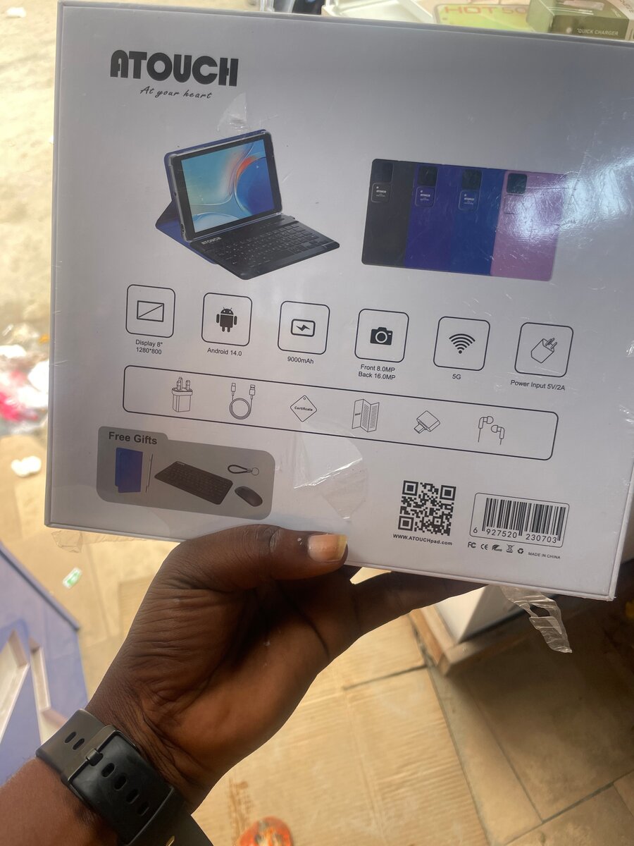 Experience seamless connectivity with the Atouch tablet featuring a detachable keyboard. Ideal for work and play, it boasts Android OS, WiFi, and dual cameras for capturing every moment. Perfect for on-the-go productivity and entertainment.