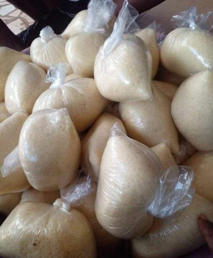 Découvrez notre farine de manioc premium provenant de dabou, soigneusement emballée pour conserver toute sa fraîcheur et sa saveur authentique. La boule a 300fr, aussi en prix d'en gros.