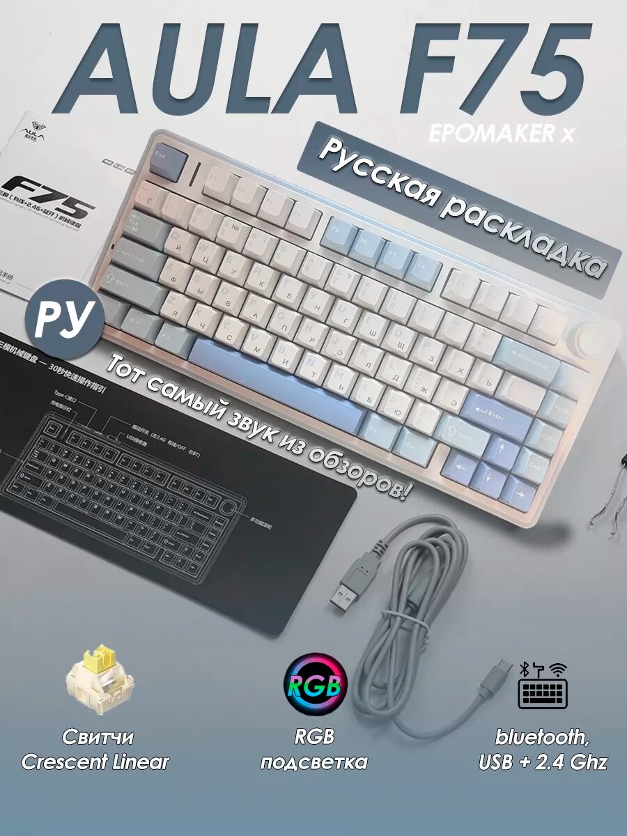 AULA F75 механическая клавиатура, которая подойдёт и для интенсивных игр, и для офисной работы. Она выделяется интересным дизайном, удобством использования, очень приятной, тактильной печатью и, что важно, доступной разумеется, для механики стоимостью, что делает её привлекательной как для начинающих пользователей, так и для энтузиастов кастомизации периферийных устройств.