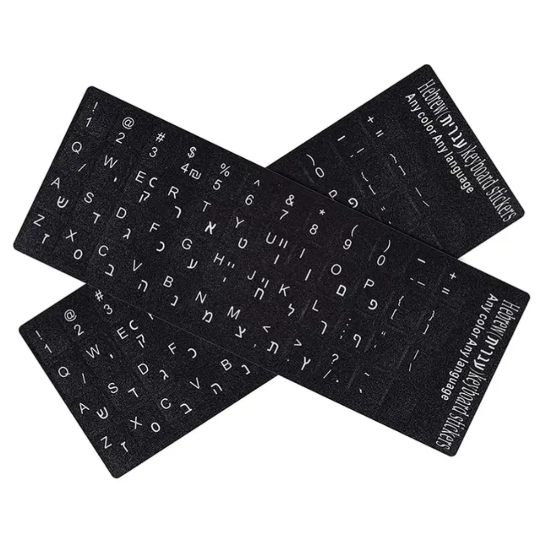 Autocollants clavier avec lettres anglaises et hébraïques. Faciles à appliquer, parfaits pour les claviers QWERTY. Idéal pour apprendre l'hébreu ou travailler dans une langue étrangère.
