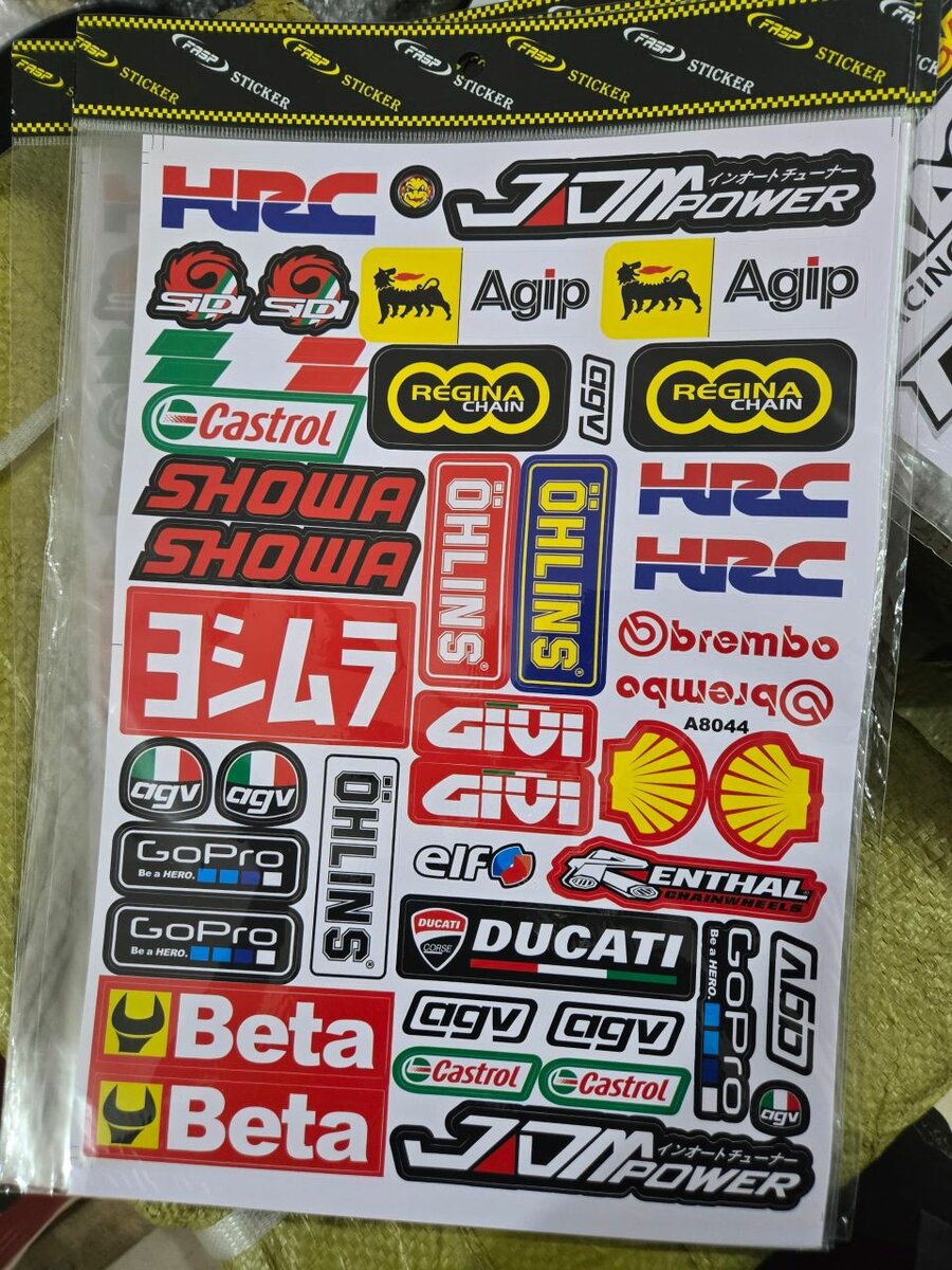 Ensemble d'autocollants de course moto, parfait pour personnaliser votre véhicule. Inclut des marques célèbres pour une touche sportive et dynamique. Matériau durable et résistant aux intempéries. Idéal pour motos, voitures et casques. Montrez votre passion avec style !