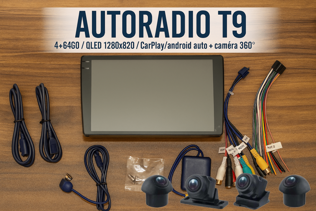 Optimisez votre conduite avec l'autoradio T9. Écran QLED 1280x820, compatible CarPlay et Android Auto, équipé d'une caméra 360° pour une sécurité maximale. Idéal pour une conduite connectée.