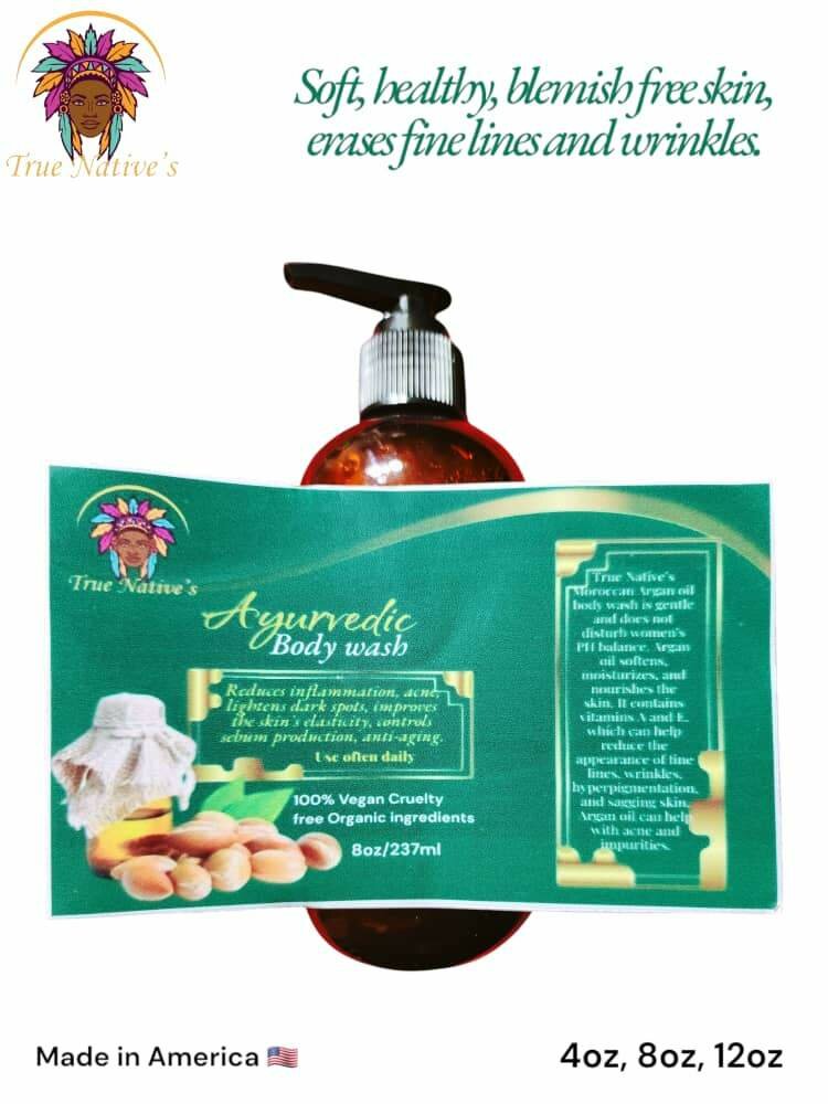 True Native's Ayurvedic Argan oil Body wash heals, brightens and softens your skin. Promotes collagen production tightening your skin and removeing fine lines and wrinkles. Pamper your skin!