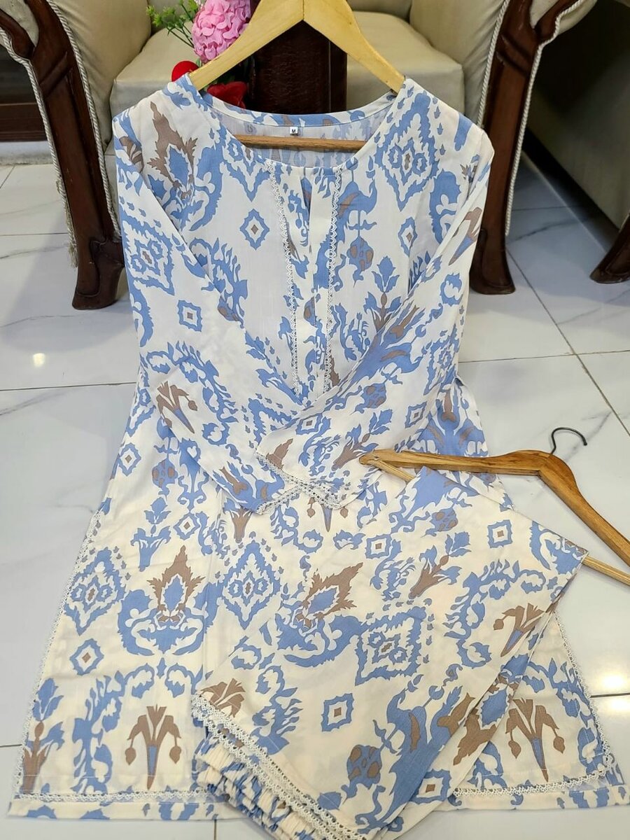 #NEW#ARRIVAL# STITCHED COLLECTION #MOST #DEMANDED# ️PURE IRISH LAWN DIGITAL PRINT LACE WORK SHIRT WITH LACE WORK TROUSER 2PC DRESS -Sizes :- Medium(21), Large(22), Shirt Length 38-39"inch Trouser Length 38"inch