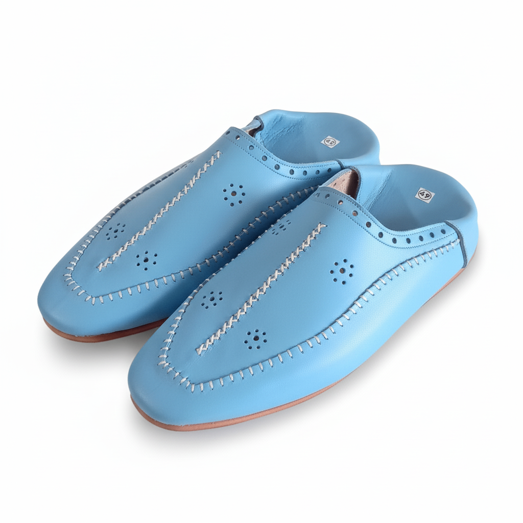Découvrez le confort ultime avec ces mules en cuir bleu. Parfaites pour une utilisation à la maison, elles offrent un design élégant avec de délicates coutures apparentes. Légères et respirantes, elles vont devenir votre choix favori pour le quotidien.
