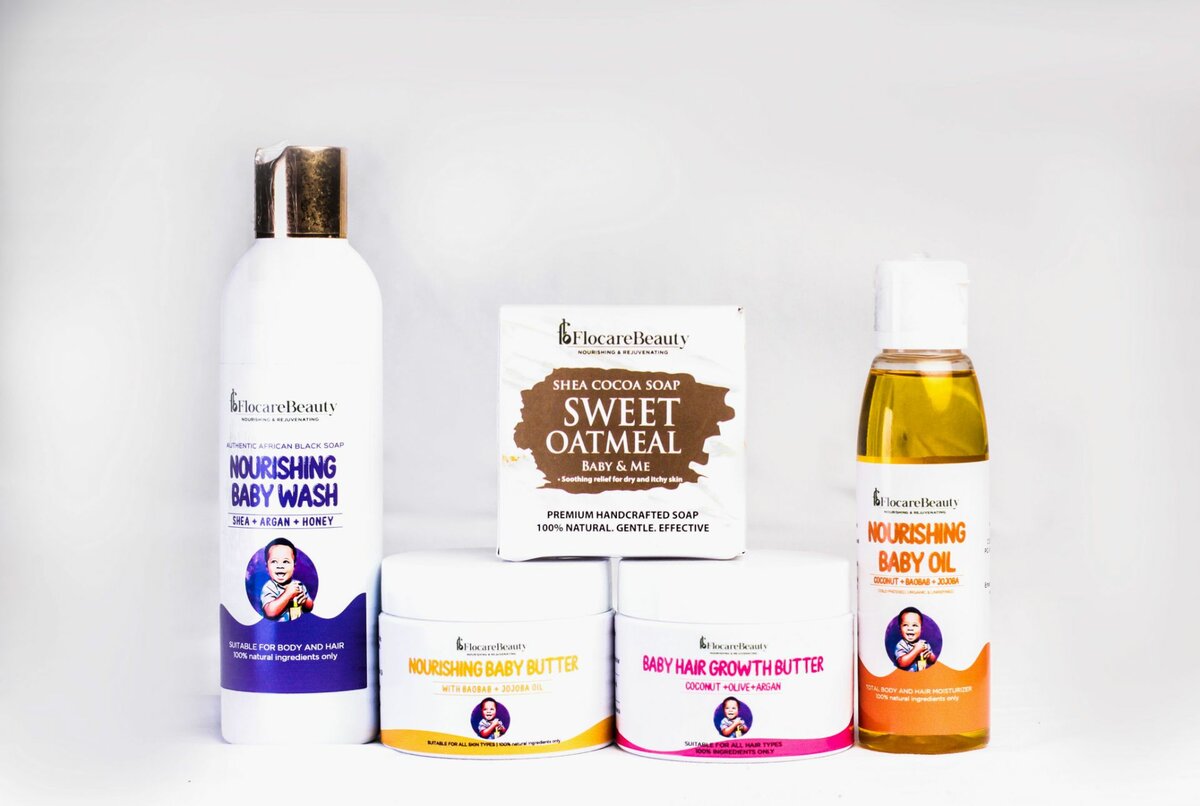 A beautiful gift box curated with our 100% natural, gentle and effective baby products. Makes the perfect gift for a new mum and baby. Contains the nourishing baby butter, baby oil, baby hair growth butter, and baby soap.
