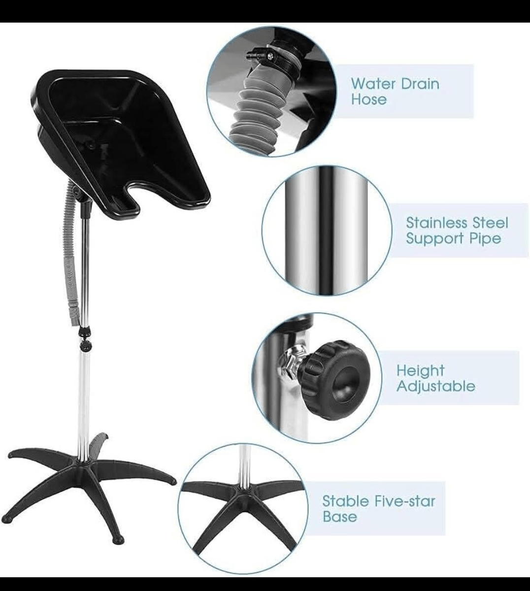 Idéal pour les salons et les soins à domicile, ce bac de shampooing réglable offre un confort optimal. Avec un tuyau de vidange pratique, un pied en acier inoxydable et une base stable à cinq étoiles, c'est la solution parfaite pour un soin professionnel.