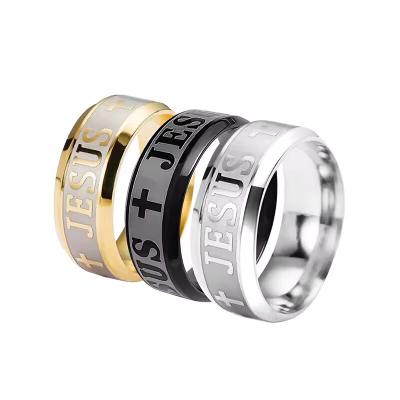 Adoptez un look spirituel avec cette bague en acier inoxydable gravée "Jésus". Disponible en trois couleurs élégantes, c'est un accessoire idéal pour exprimer votre foi. Sa conception durable en fait un choix parfait pour le port quotidien ou pour offrir en cadeau.