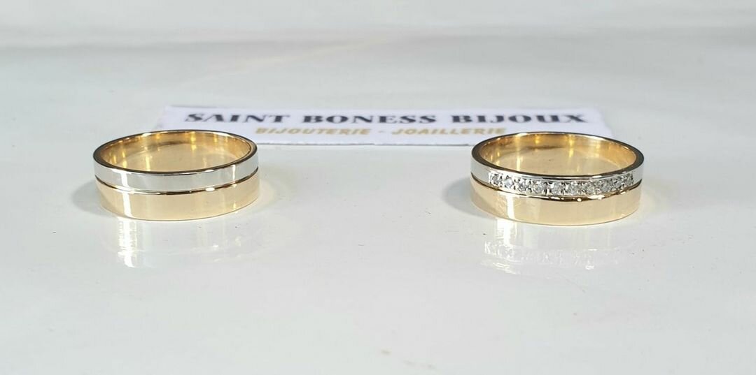 Bague alliances diamanté deux or ( Or jaune Or blanc ) 18k