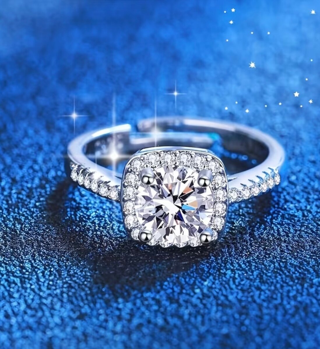 Élégante bague en argent ornée d'un diamant central et de détails scintillants. Parfaite pour une déclaration de style ou comme cadeau spécial.