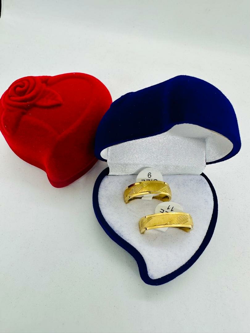 Un ensemble de deux bagues en or élégant, parfait pour les couples. Livré dans un coffret luxueux en velours, idéal pour une occasion spéciale comme un mariage ou une cérémonie de fiançailles. Offrez cette touche d'élégance intemporelle.