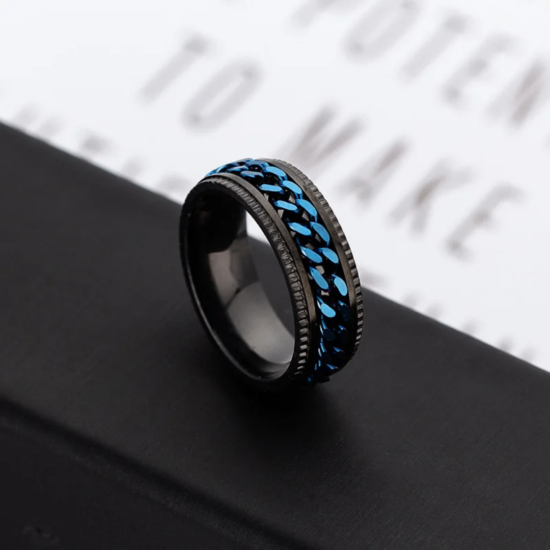 Élégante bague en acier inoxydable pour homme avec chaîne bleue intégrée. Parfaite pour un look moderne et distinctif. Idéale pour un usage quotidien ou des occasions spéciales.