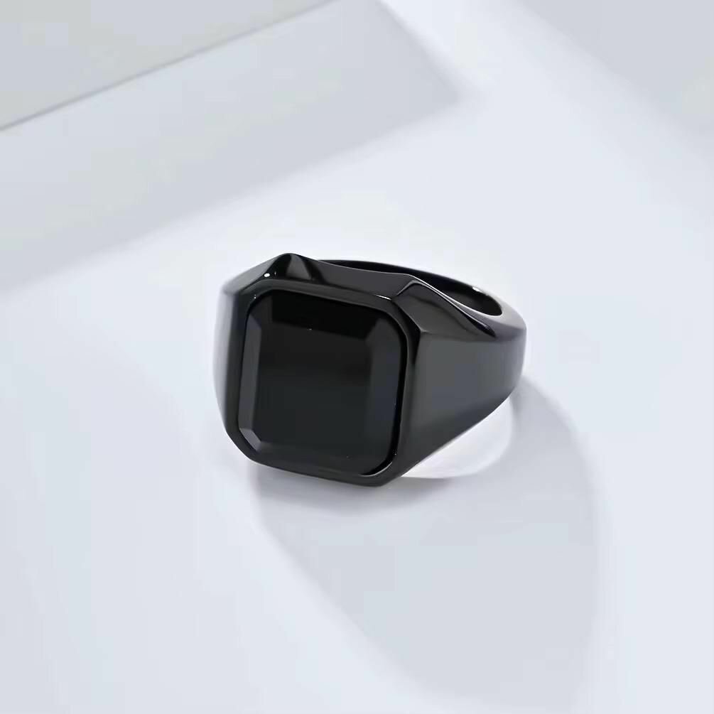 Élégante bague pour homme en acier inoxydable, disponible en noir et or. Parfaite pour une touche sophistiquée et moderne à votre look quotidien. Idéale pour un cadeau ou une occasion spéciale, cette bague unique rehaussera n'importe quelle tenue.