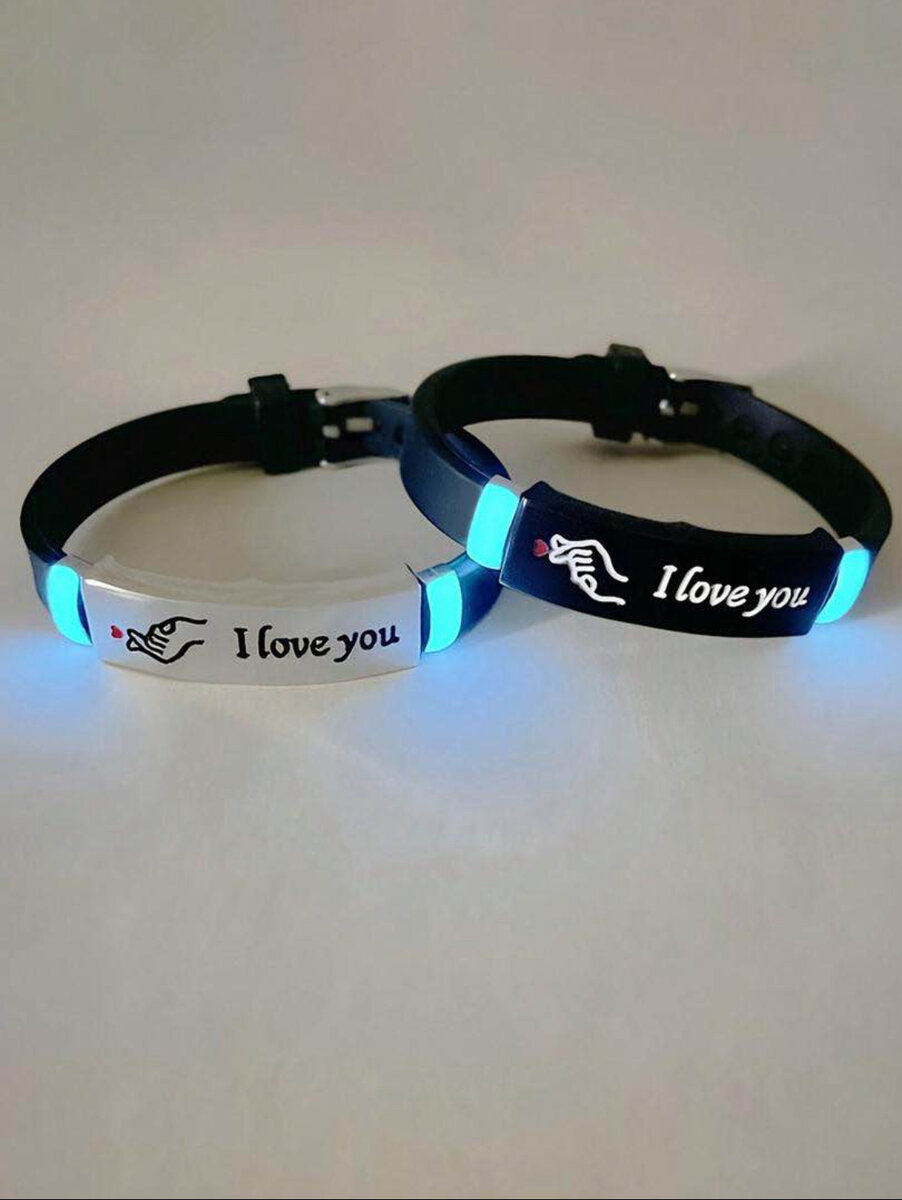 Bague pour couple avec lumière LED, symbole d'amour éternel. Design personnalisé 'I love you', parfait pour un cadeau romantique.