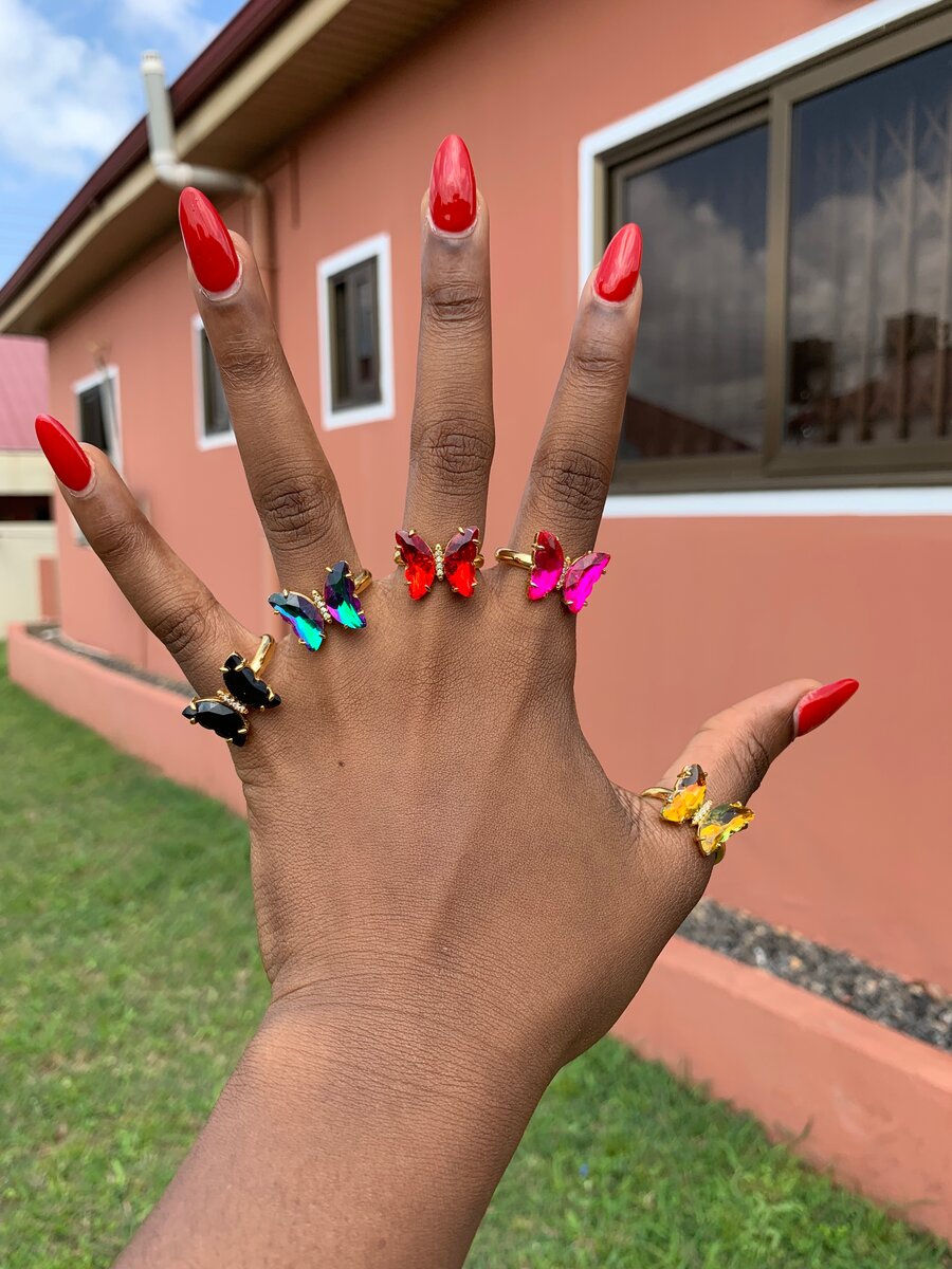 Apportez une touche d'élégance à votre style avec nos bagues papillon en cristal multicolore. Chaque pièce reflète la lumière magnifiquement, idéale pour des occasions spéciales ou une utilisation quotidienne. Conçues pour briller et captiver, ces bagues sont le choix parfait pour ceux qui recherchent originalité et glamour.