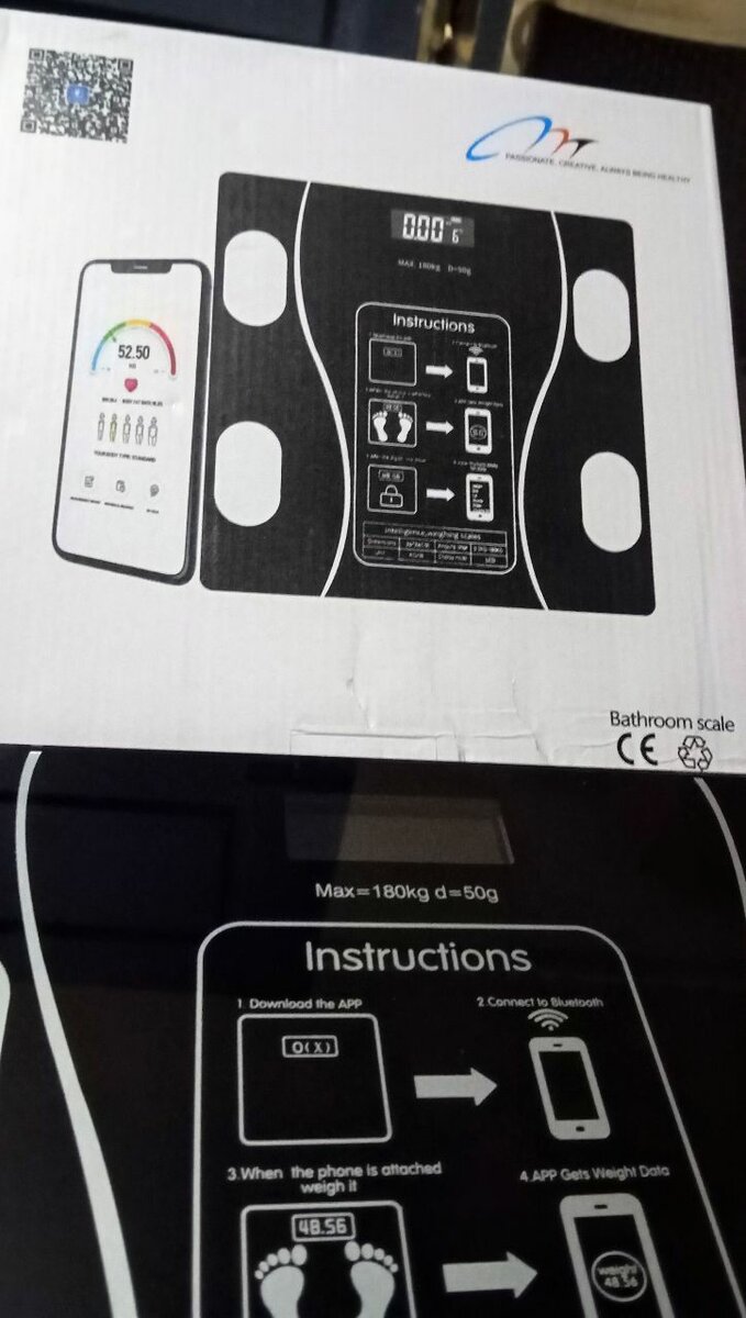Balance connectée avec suivi de la santé via application. Capacité max 180kg, précision à 50g. Idéale pour suivre vos progrès santé et fitness.
