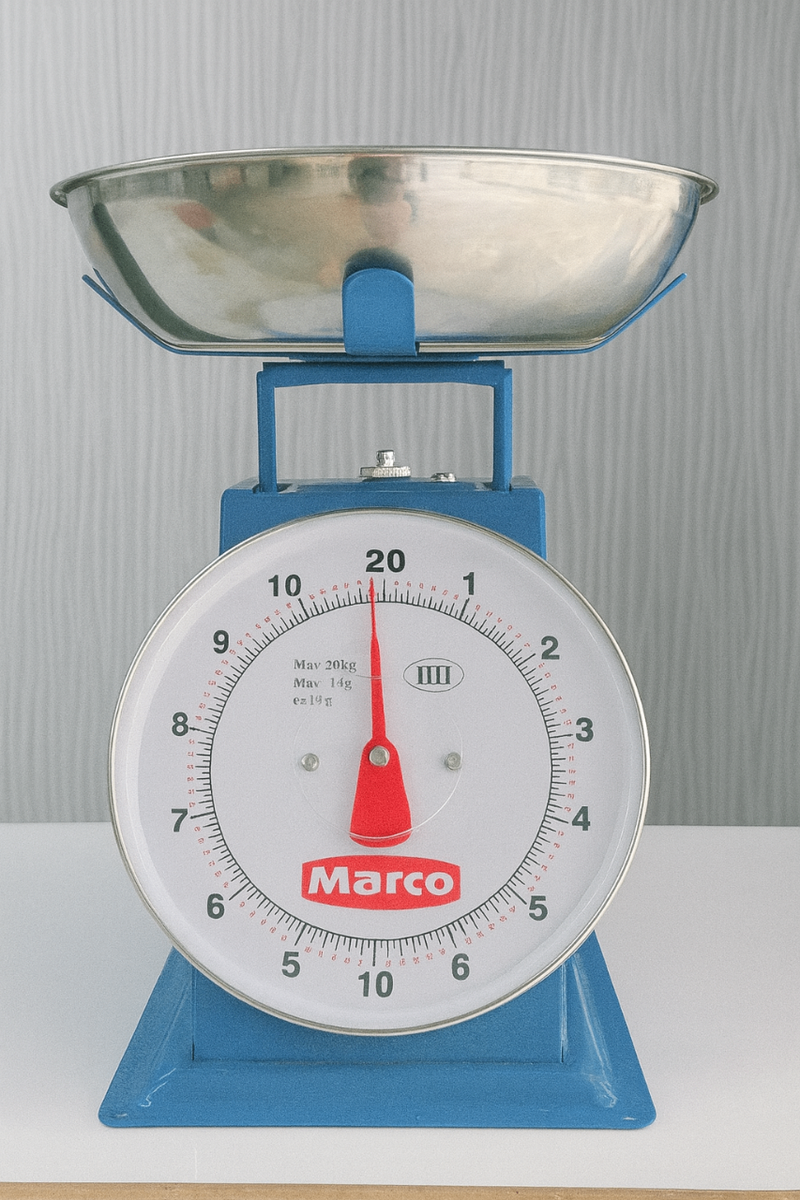 Robuste balance mécanique Marco, idéale pour peser vos ingrédients de cuisine avec précision. Capacité maximale de 20 kg, simple à utiliser, et design élégant. Un must pour chaque cuisine!