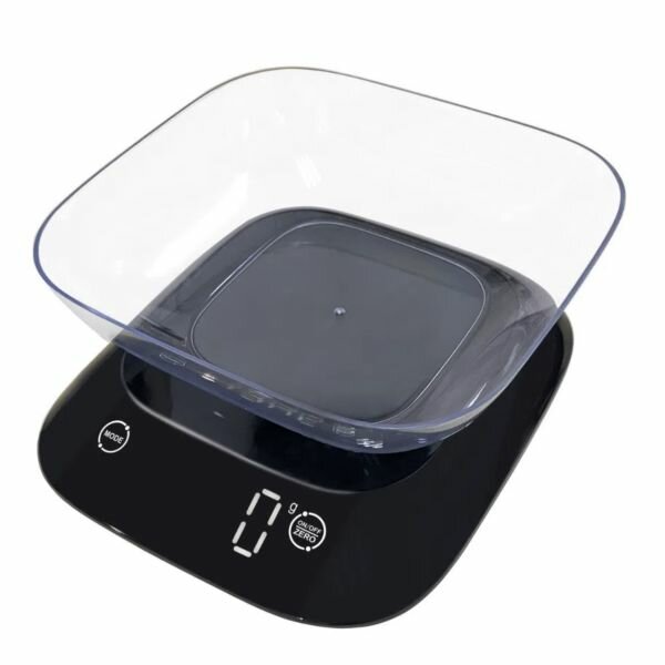 Balance de cuisine précise de 1g à 5kg. Conception moderne, plateau en plastique amovible, idéale pour pâtisserie et plats. Fonctionne avec piles AAA. Parfait pour les chefs à domicile