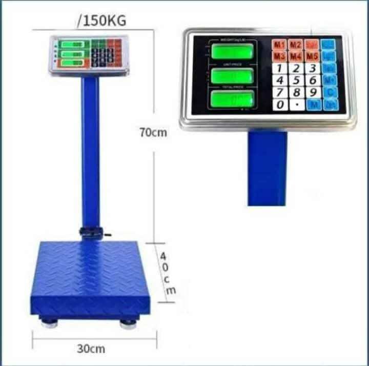 Balance électronique professionnelle robuste avec une capacité de 150kg, idéale pour les commerces, les marchés et les industries alimentaires.