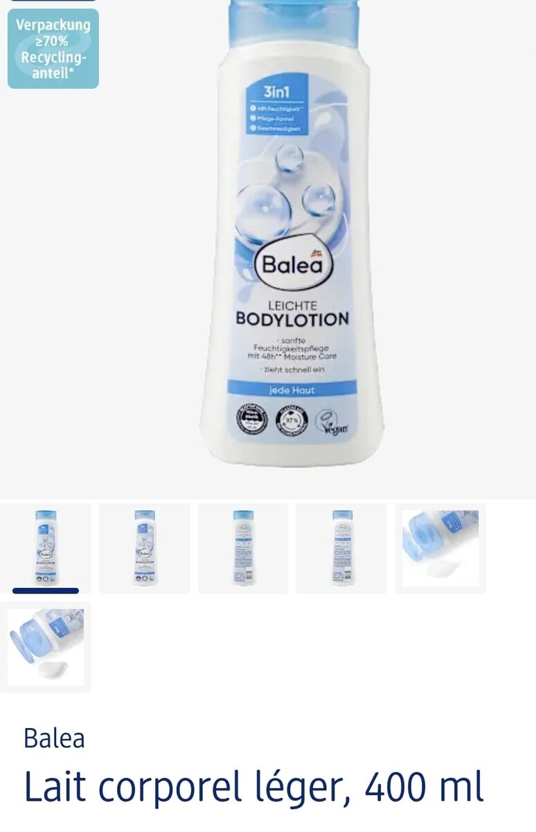 Hydratez votre peau avec le lait corporel léger de Balea. Sa formule 3-en-1 est idéale pour une peau douce et soyeuse au quotidien. Vegan et respectueux de l'environnement, c'est la parfaite alliance entre soin et éthique.