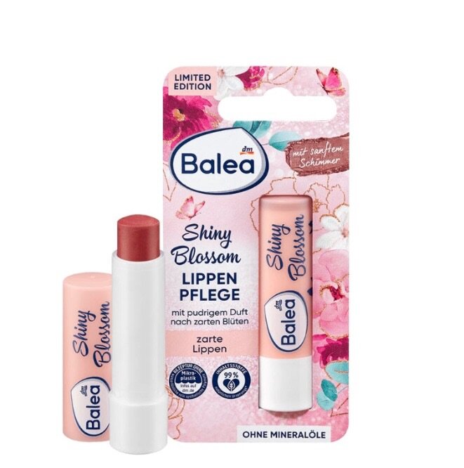 Découvrez le baume à lèvres Balea Shiny Blossom, édition limitée, pour des lèvres douces et éclatantes. Son parfum poudré floral ravira vos sens. Enrichi sans minéraux, il hydrate et sublime naturellement.