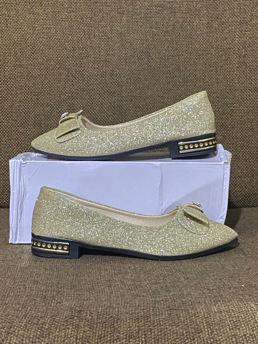 Ajoutez du glamour à votre tenue avec ces ballerines dorées scintillantes. Confortables et chics, elles sont idéales pour les soirées ou les sorties en ville. Ornées de détails élégants, elles se marient parfaitement avec n'importe quelle robe ou pantalon. Un choix parfait pour briller en toutes occasions!