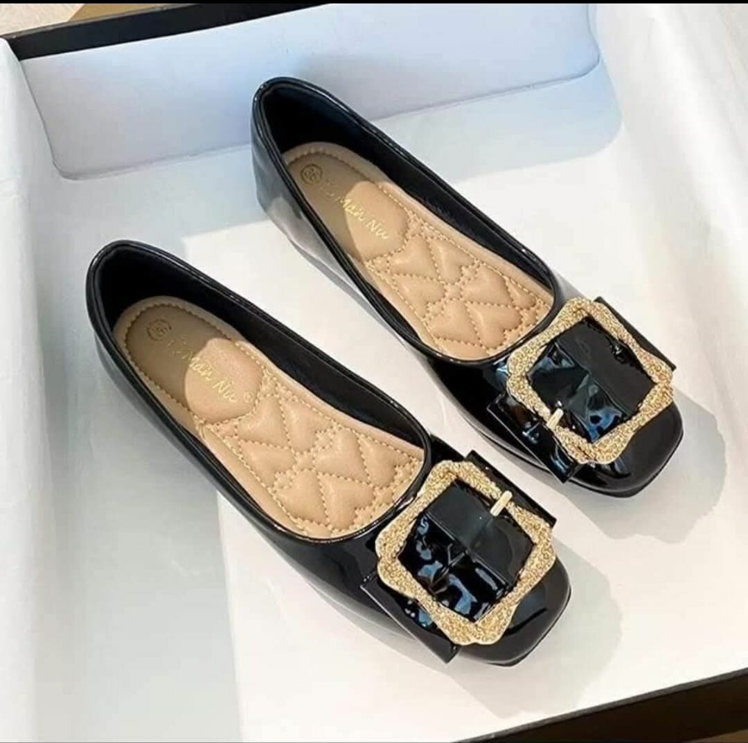 Découvrez ces ballerines noires élégantes avec une boucle glamour dorée, parfaites pour une touche chic dans votre tenue quotidienne. Confortables et stylées, elles conviennent pour le travail, les sorties ou même un événement spécial. Idéales pour les femmes modernes à la recherche d'une élégance polyvalente pour leurs filles. Pointure 35