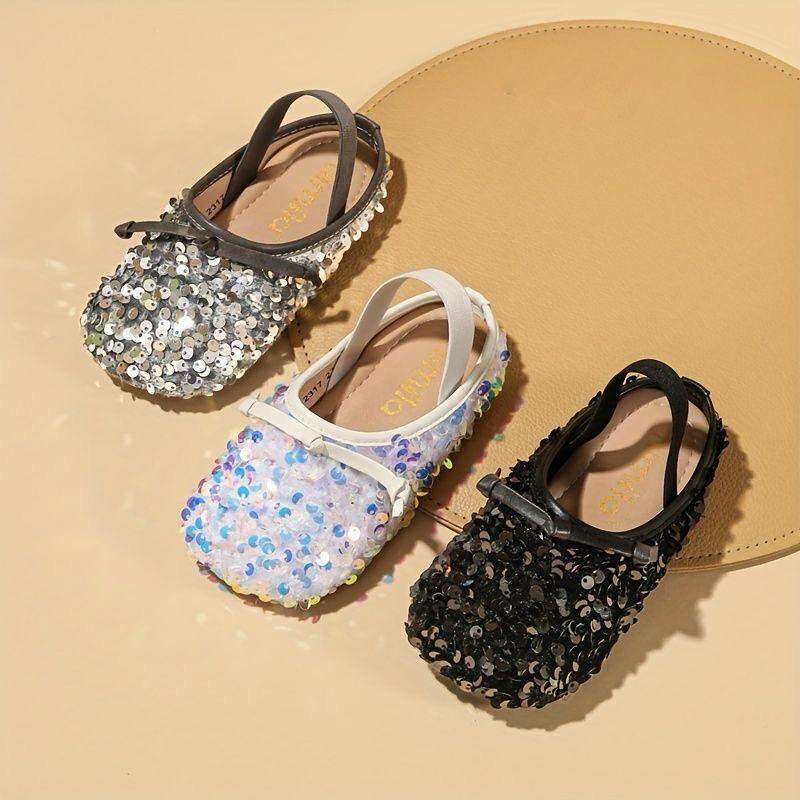 Élégantes ballerines pour enfant avec paillettes. Parfaites pour les occasions spéciales, offrant style et confort. Idéales pour compléter une tenue chic et festive.