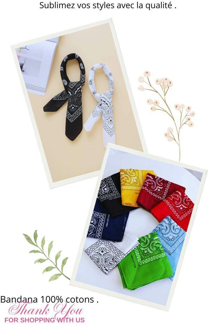 Ajoutez une touche de style à votre tenue avec ces bandanas 100% coton. Disponibles en plusieurs couleurs vives, ils sont parfaits pour toute occasion – randonnée, mode, ou protection solaire. L'idéal pour personnaliser vos looks avec facilité et flair!