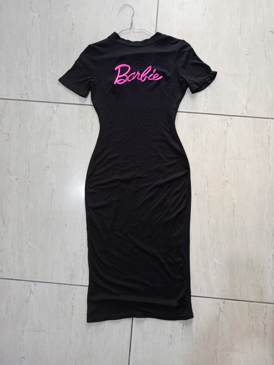 This sleek Barbie black bodycon dress offers a chic, figure-hugging fit perfect for a night out or casual gatherings. The iconic Barbie logo adds a playful touch to your wardrobe, making it a standout piece. Ideal for fans of retro fashion and anyone looking to make a stylish statement. Comfortable and versatile, it's a must-have for any fashion-forward wardrobe.