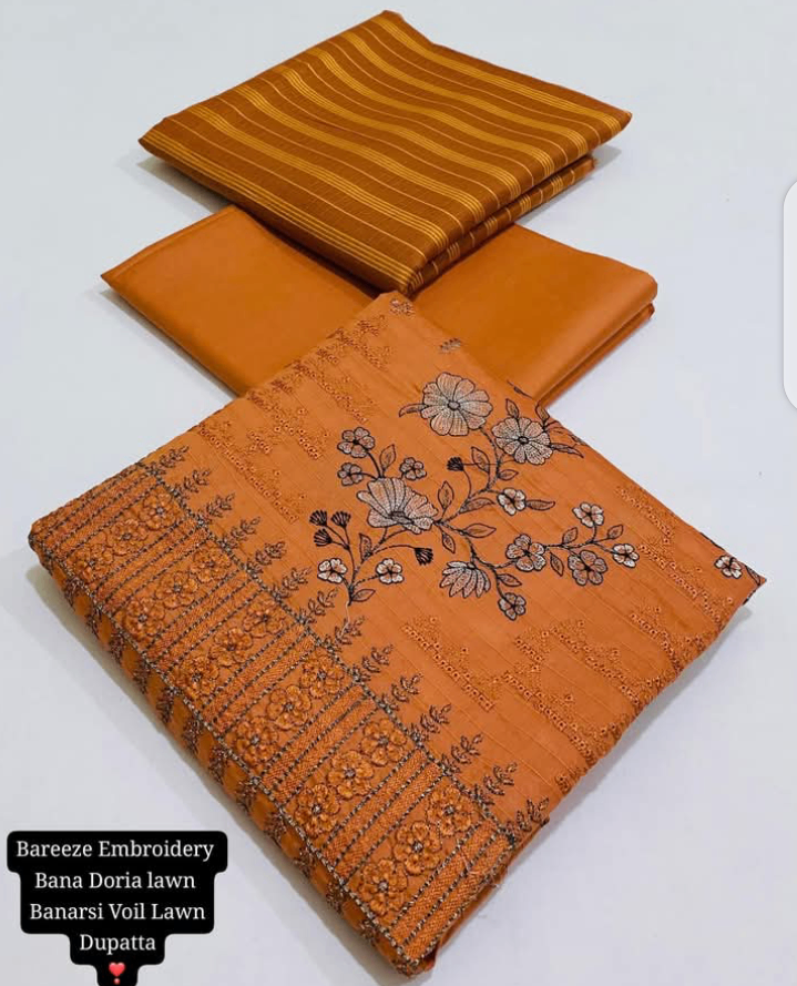 BAREEZ Original 3pc Printed Lawn Collection Fabric Lawn Digital Printed All Over Lawn Shirt Same Printed Trouser Digital Printed Voil lawn Duppata Stuff N Colors Garenty Beautiful Color's Scheme OutClass Fabrics Booked You're Order Now