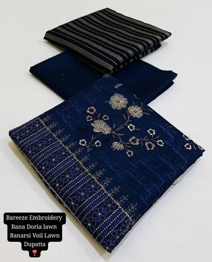 BAREEZ Original 3pc Printed Lawn Collection Fabric Lawn Digital Printed All Over Lawn Shirt Same Printed Trouser Digital Printed Voil lawn Duppata Stuff N Colors Garenty Beautiful Color's Scheme OutClass Fabrics Booked You're Order Now