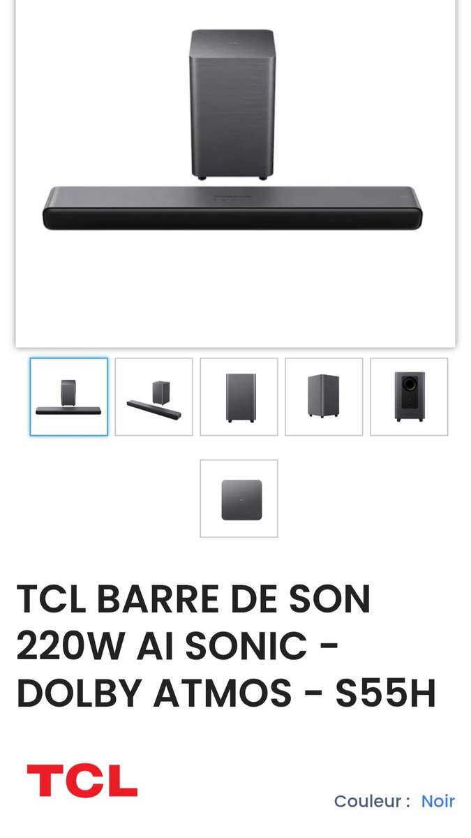 Profitez d'une expérience sonore immersive avec cette barre de son TCL 220W. Dotée de la technologie Dolby Atmos, elle transforme votre salon en véritable salle de cinéma. Le design élégant s'intègre parfaitement dans tout intérieur. Idéale pour les amateurs de films et de musique. Facile à installer et à utiliser.