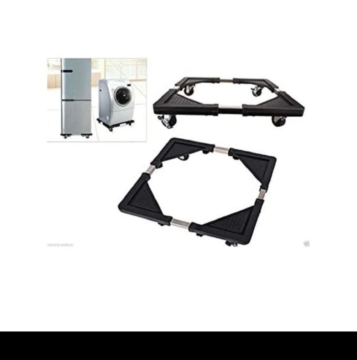 De Base De Support pour réfrigérateur et machine à laver. Pour des voyages d'appareils ménagers et pour éviter les fissures de celui-ci. Dotée de 4 roues.Très résistant. Cette base vous permettra de déplacer ces des poids très lourds en toute facilité, grâce aux roues pivotantes. Les roues tournent à 360 ° ont la possibilité d'être bloquées par le frein.