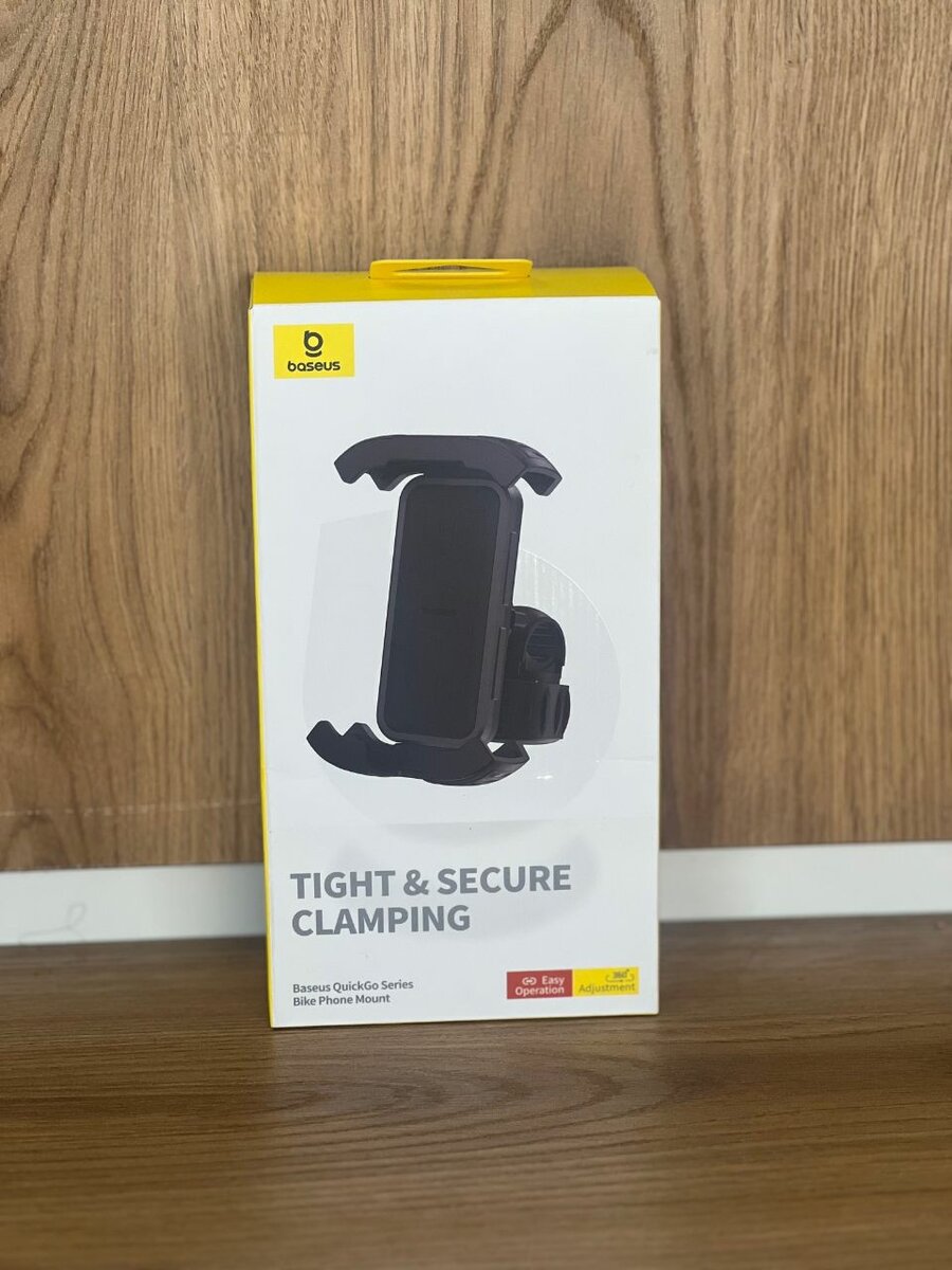 1. 2.Upgraded Design for Better Protection 2.3.360° Rotatable Design 3.Tight Clamping with Toggle Switch 4.5.Super Quick & Easy Installation Name: Baseus QuickGo Series Bike Phone Mount Model No.: BS-CM024 Material: ABS+TPU Applicable phone size: 5.4-7.2 inches Applicable handlebar size: Ф24-30mm Product size: Mount: 140*92*52mm; Tail clip: 52*72*70mm Weight: About 100g