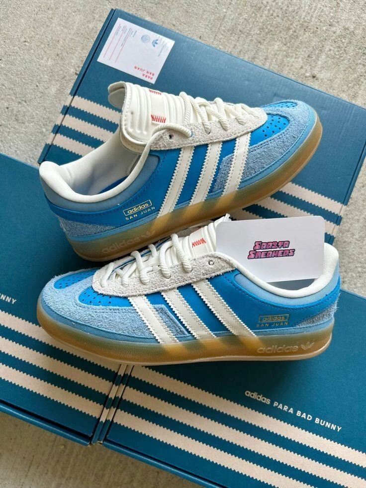 les sneakers Adidas Para Bad Bunny édition limitée, alliant un design iconique bleu et blanc à un confort inégalé.