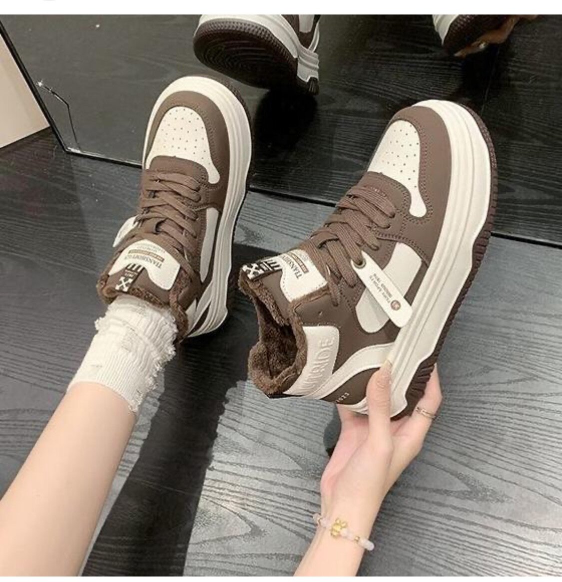 Baskets tendance marron-blanc