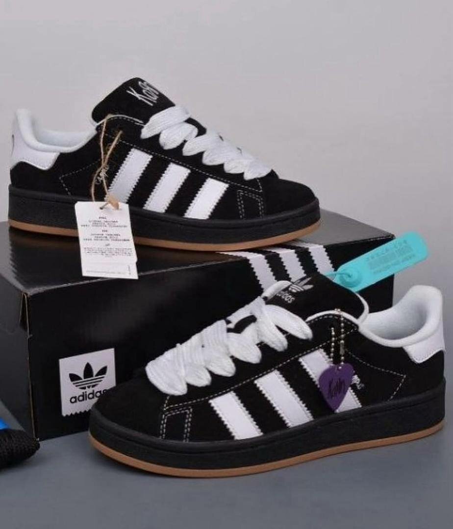 Découvrez les baskets Adidas Campus en cuir noir et blanc, alliant style rétro et confort moderne. Idéales pour un look décontracté et sportif. Semelle en gomme durable, parfaites pour le quotidien ou vos activités urbaines. Offrez-vous le confort emblématique d'Adidas.