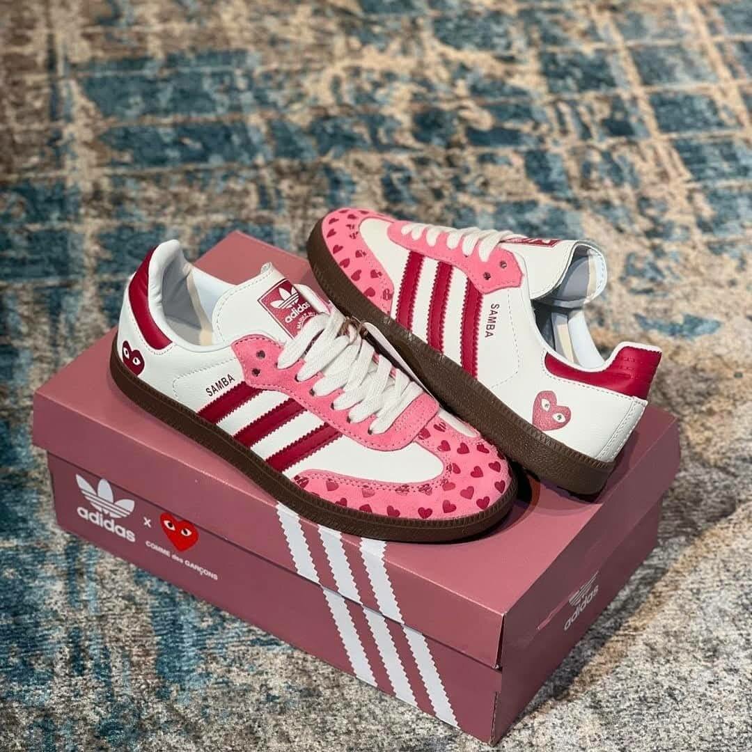 Craquez pour ces baskets Adidas Samba au design unique avec motifs de cœur. Idéales pour ajouter une touche de style à vos tenues, alliant confort et originalité. Parfaites pour un usage quotidien ou pour sortir entre amis.