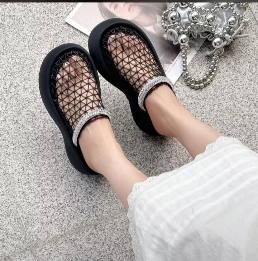 Optez pour un look moderne avec ces baskets ajourées noires. Parfaites pour les sorties décontractées, elles sont à la fois confortables et élégantes. La conception en maille assure une ventilation optimale et le détail brillant ajoute une touche chic. Idéales pour une tenue estivale ou printanière.