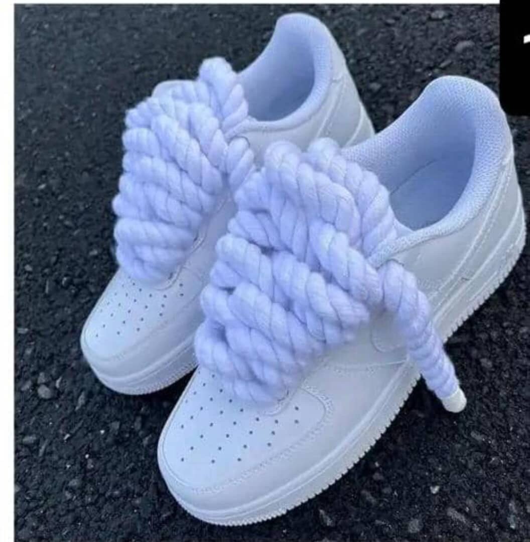 Découvrez ces baskets blanches uniques avec de larges lacets originaux qui vous démarqueront partout. Parfaites pour un style audacieux.